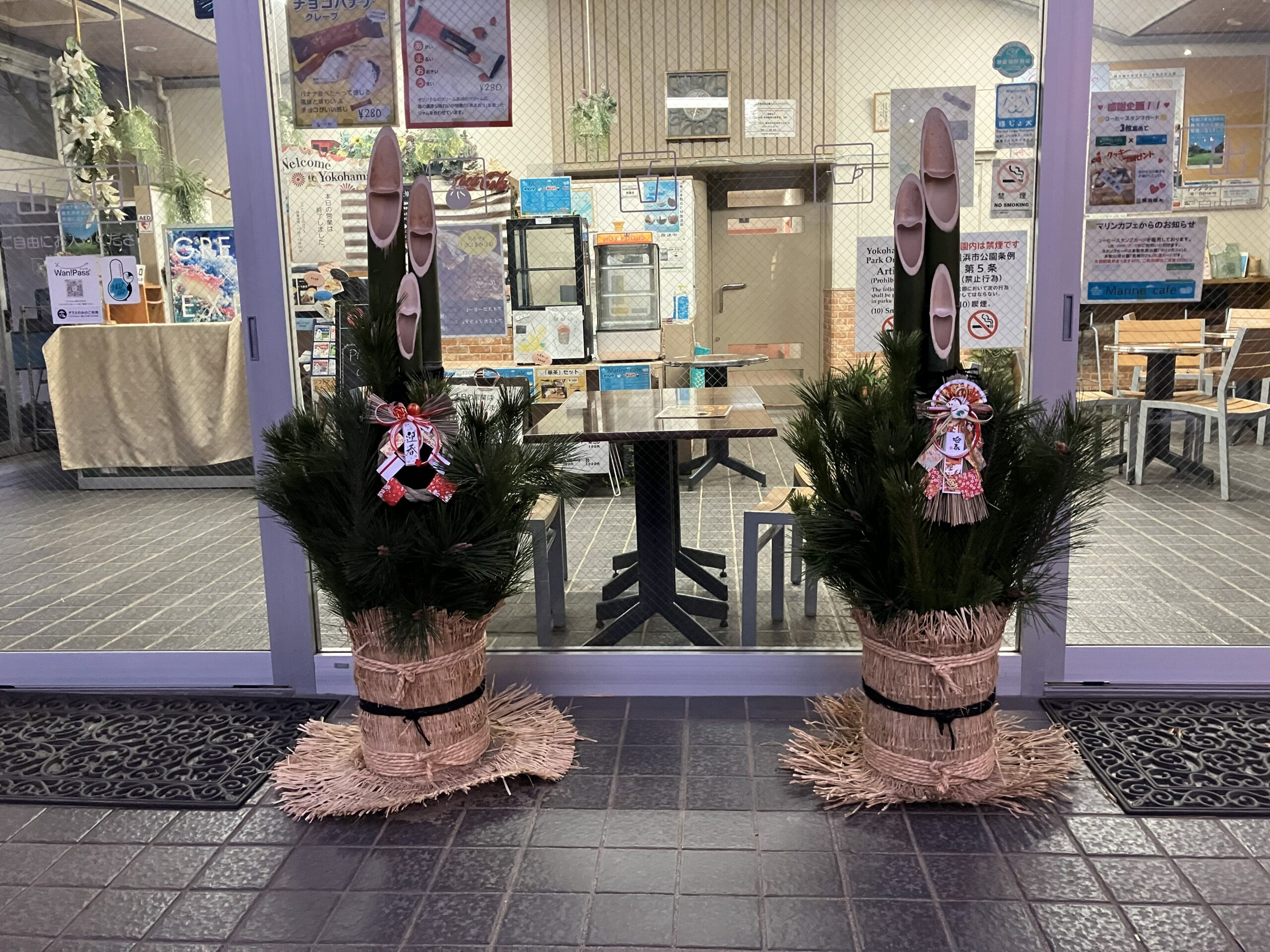 公園スタッフ総出で門松を制作し、レストハウスに飾らせて頂いています。